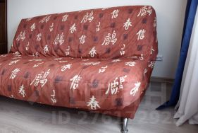 Спальня: шкаф, столик с лампой, напольное зеркало, раскладной диван.