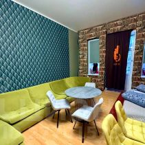 ЧТО ДОСТУПНО ГОСТЮ: — Кухонные принадлежности — Микроволновая печь, чайник, фен, утюг, гладильная доска, холодильник — Стиральная машина — Телевизор, Wi-Fi — 16 спальных мест — Раздвижные столы — Два санузла, душевая кабина — Свежие постельное белье и полотенца — Возможна парковка в соседнем дворе (обсуждается)