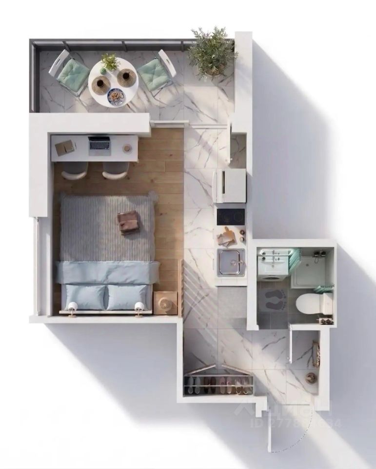 ЛОДЖИЯ: вид на город, мягкие стулья, кофейный столик