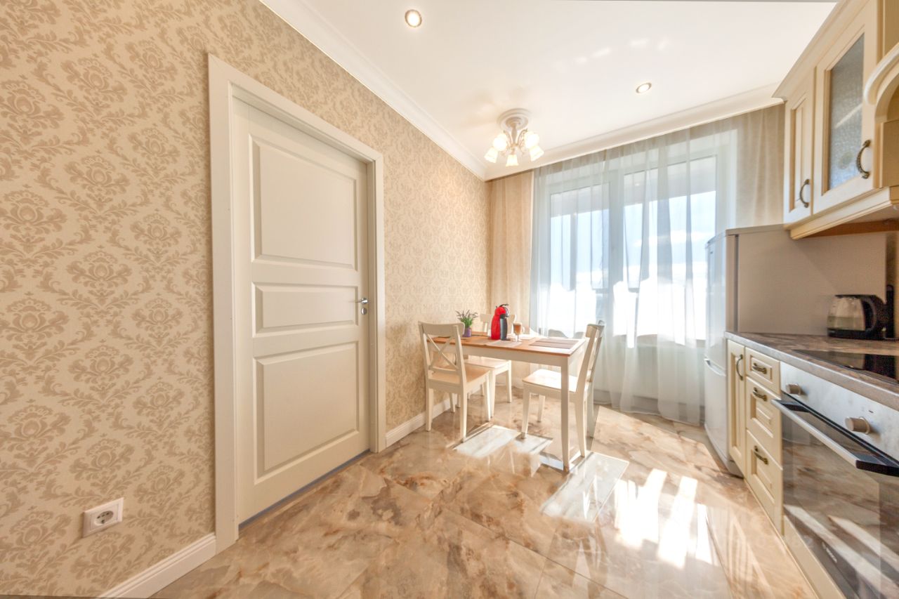 Кухня оборудована всем необходимым. Имеется холодильник, микроволновая печь,посудомоечная машина, электрический чайник, набор посуды, кастрюли, сковороды