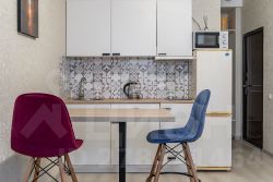 Все необходимое для комфортного проживания: телевизор, Wi-Fi, кабельное телевидение, утюг, фен, стиральная машина, холодильник, микроволновая печь, электроплита, вытяжка, чайник, посуда и др.