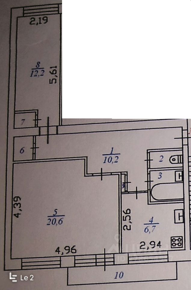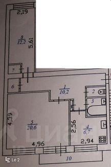 Балкон 10 м, но не застеклен. Выход на балкон из большой комн., балкон на комн. и кухню.