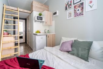 В квартире сделан ремонт, и она полностью готова к проживанию. В студии есть необходимая мебель, а также техника: холодильник, телевизор, микроволновка, мультиварка и стиральная машина. Совмещённый санузел оборудован всем необходимым для вашего комфорта.