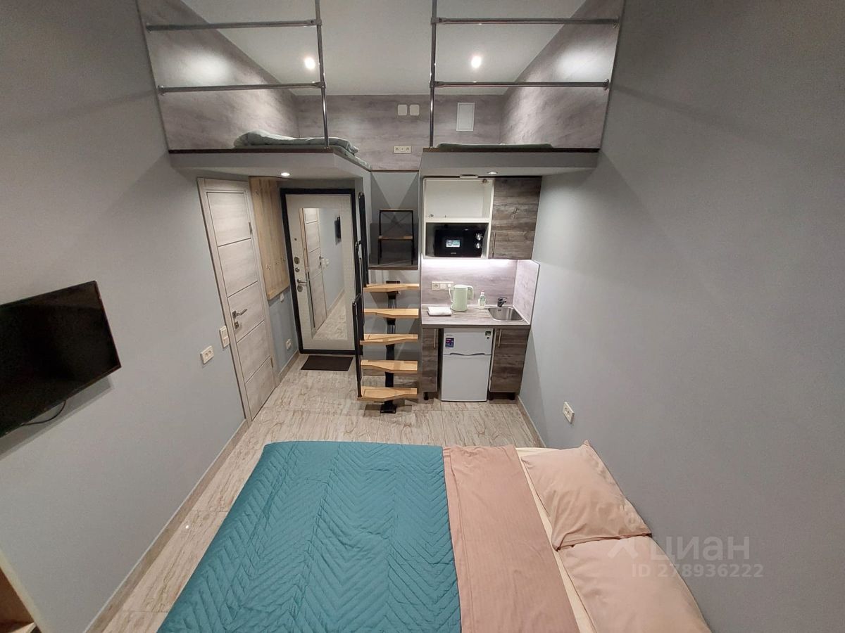 Студия располагается в апарт-отеле рядом с Московским вокзалом и предлагается в долгосрочную аренду до 26 апреля.