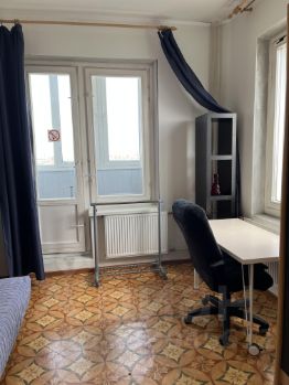 Гостинная полностью с икеевской мебелью, удобным гибким светильником, лавкой и тренажерами для занятий фитнесом, оборудованным рабочим местом, а из за двух окон днем комната наполнена светом. Есть wifi, робот-пылесос, вентилятор и теплые полы.