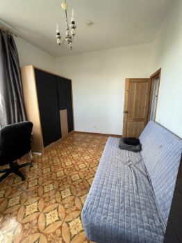 Во второй комнате большой гардеробный шкаф, рабочее место (стол, стул) и диван-кровать.