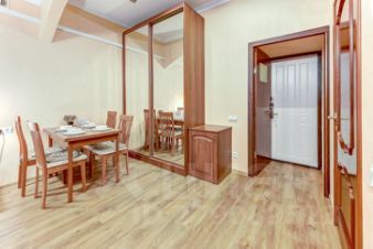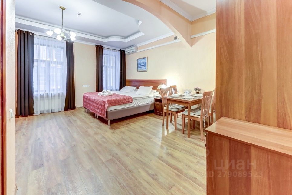 В этой просторной студии, расположенной в 150 метрах от ст. метро Садовая/Спасская и в 50 метрах от набережной канала Грибоедова, есть все необходимое как для краткосрочного, так и долгосрочного пребывания. После реновации в 2020 году в распоряжении гостей теперь не только двуспальная кровать, туалетный столик, зеркало, диван, телевизор, холодильник, шкаф-купе, прикроватные тумбочки (2 шт.), но и полностью оборудованная кухонная зона: чайник, микроволновая печь, электроплита. Окна-стеклопакеты, поэтому Вашему сну ничто не помешает. В ванной комнате находится душевая кабина, унитаз, раковина, фен.