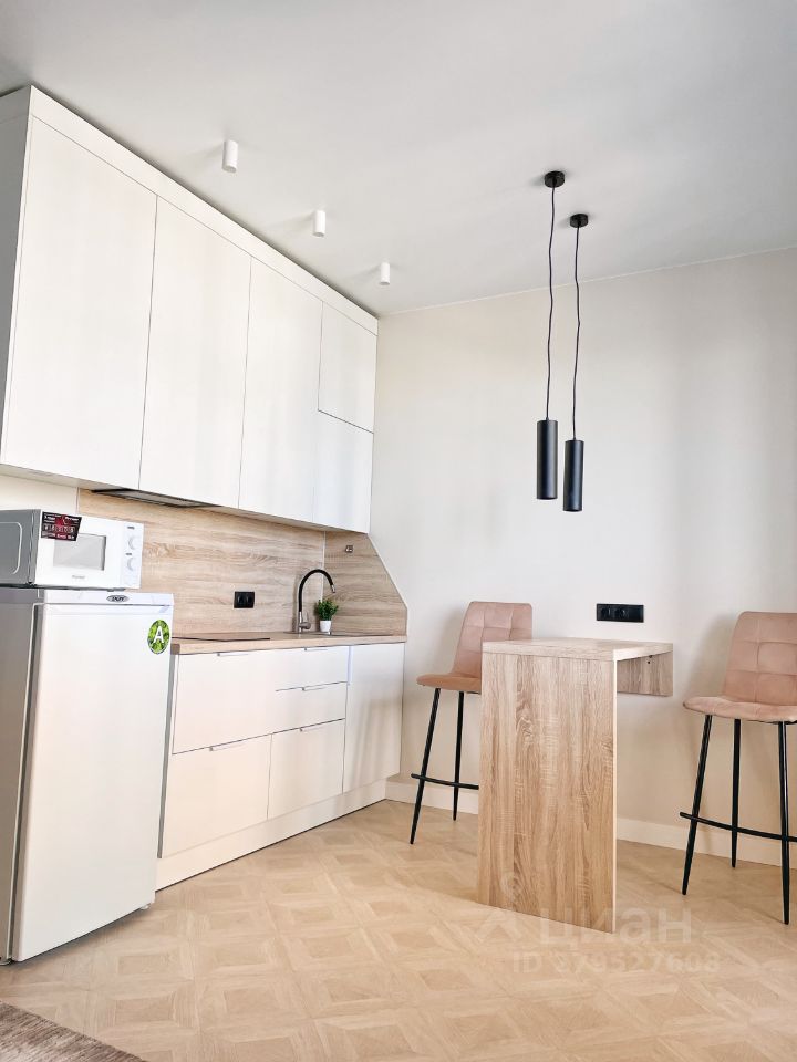 Квартира укомплектована техникой: варочная панель, вытяжка, холодильник, микроволновка, стиральная машина, фен, утюг, чайник.
