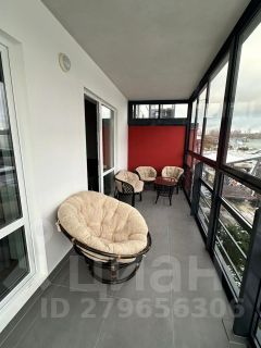 Квартира на первом этаже (высокий этаж, есть лифт), огромный балкон 13 кв м. Кухня-гостиная и спальня.