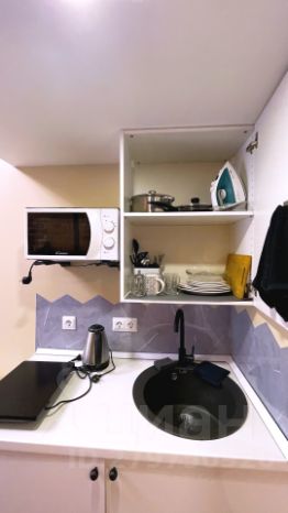 Оборудована плитой, холодильником, микроволновой печью, электрочайником, набором посуды и столовыми приборами.