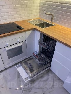 В квартире бытовая техника: холодильник Indesit, посудомойка Bosch, стиральная машина LG, микроволновая печь Икеа, плита и духовка Икеа, мебель Икеа: встроенная кухня, кухонный стол, диван двуспальный, кровать двуспальная с подъемным миханизмом, шкаф четырехдверный, два шкафа в прихожей, турник в комнате. Компьютерных столов, которые на фото, не будет.