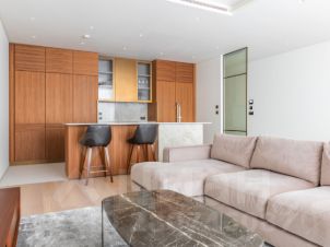 Удобная планировка с большой кухней-гостиной, в которой вы с комфортом сможете принимать гостей и проводить время с семьей. Кухонная зона разделена островом, который позволяет с удобством готовить или же сервировать блюда. Два больших сан-узла. В спальных комнатах есть гардероб для удобного хранения одежды (мастер спальня), также есть дополнительная комната, которую можно использовать как кабинет или под другие ваши нужды. Качественная сантехника Duravit и Villeroy&Boch. Безупречное качество отделочных материалов, тщательно продуманный функционал, роскошные панорамные окна в пол шириной 4 м, высотой 2,6 м, современные инженерные системы.