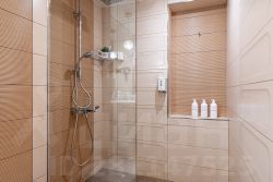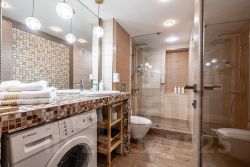 Дополнительный комфорт для Ваших ног от теплых полов с керамической плиткой и в остальном пространстве натуральный ламинат.
