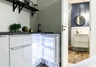 В апартаментах есть абсолютно всё: постельное белье люкс класса, мягкие полотенца, косметические средства, мягкие тапочки.