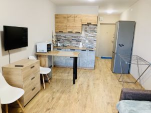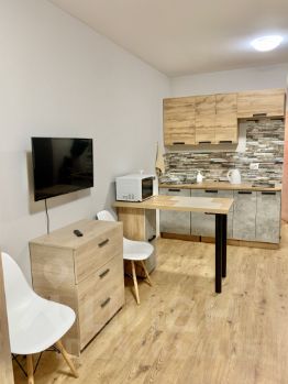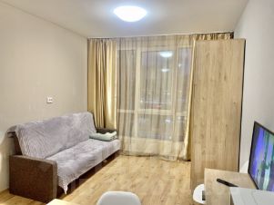Комната большая- можно менять обстановку под свой вкус. Есть все необходимое: телевизор Xiaomi смарт с wi-fi; микроволновая печь, холодильник, стиральная машина на 5 кг, диван из ткани рогожка с ортопедическим блоком и местом для хранения, большой шкаф, комод, кухонный гарнитур с варочной панелью и зоной подсветки, барный стол с стильными стульями, обувщица, вешалка, зеркало в ванной и сушилка для посуды и белья.