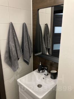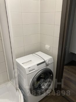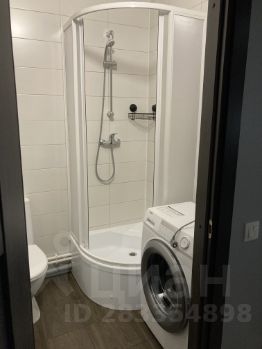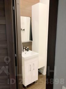 - в ванной комнате стиральная машина, высокий шкаф, зеркало и тумба;