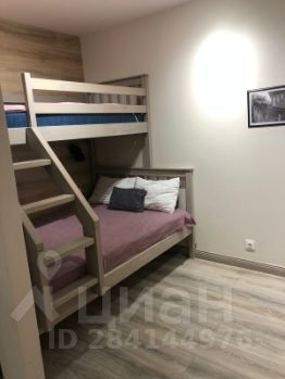 В спальной зоне удобная двухярусная кровать с ортопедическими матрасами, первый ярус полноценная двухспальная кровать, на втором 1,5 спальная.