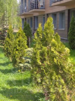 Окна квартиры выходят на зелёный газон по периметру огороженный хвойными деревьями, в тёплое время можно установить садовую мебель или качели.