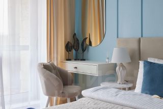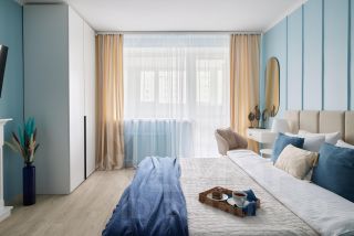 Спальные места для 6 гостей: два спринг-бокса 80/200 и два дивана в кухне-гостиной, а также кресло-кровать и пуфик с белоснежным постельным бельём.