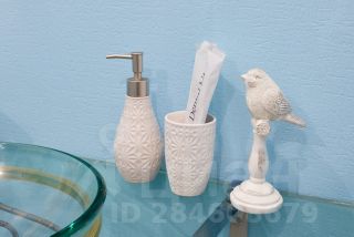 В ванной комнате фен, шампунь и бальзам для волос, гель для душа и мыло.