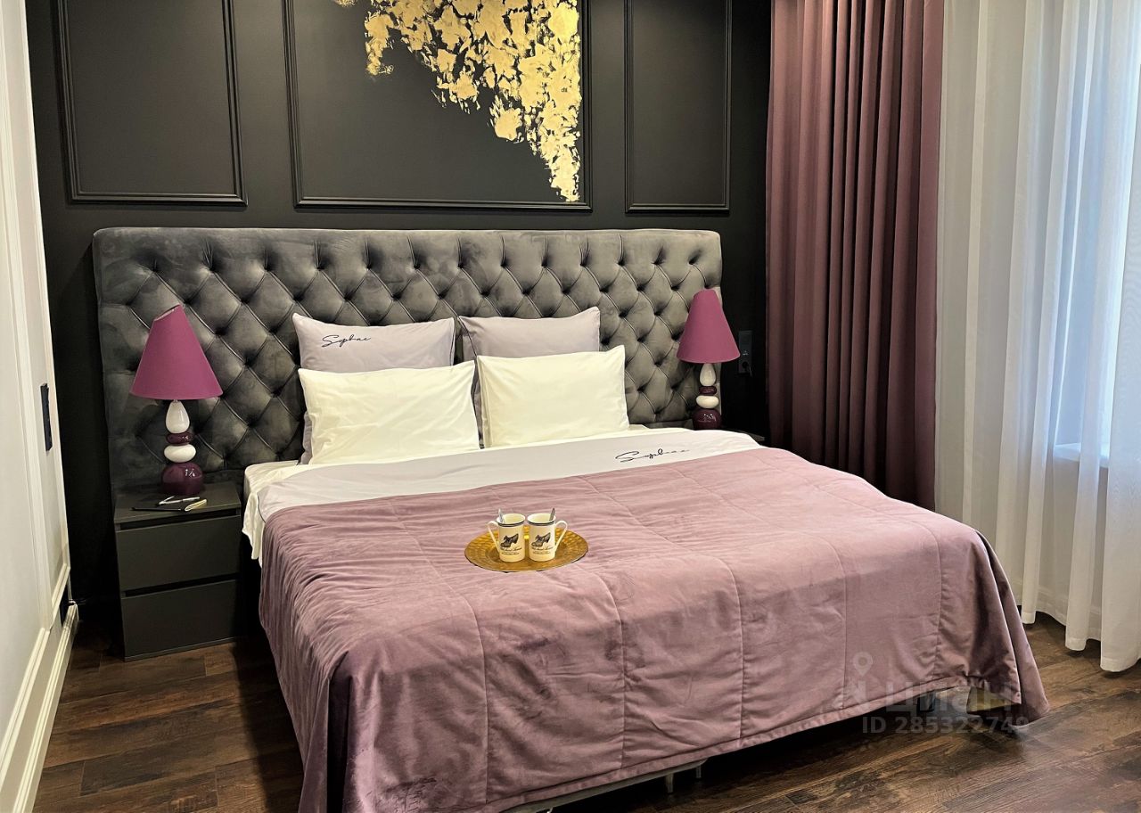 2Здесь может полноценно разместиться семья, так как есть большая кровать king-size с мягким изголовьем, а также большой диван.