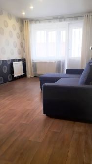 В квартире сделан косметический ремонт, общая площадь - 43.1 кв.м., кухня просторная 11 кв.м., площадь комнаты 17 кв.м., в комнате - лоджия и два окна. В коридоре большая кладовая, санузел раздельный (ванная). Все в наличии для комфортного проживания мебель и техника, ТВ нет, есть антенна, интернет проведен. Везде стеклопакеты. Мусоропровод на лестничной клетке.