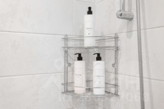 В ванной комнате фен, шампунь и бальзам для волос, гель для душа и мыло.