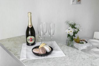 Мы радуем гостей WELCOME-набором (чай, кофе, соль, сахар, специи, крупы, масло подсолнечное).