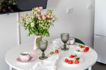 - В квартире есть все для комфортного проживания 4х гостей: Полностью оборудованный кухонный уголок со всей посудой, электроплита, чайник, микроволновка, утюг, гладильная доска, стиральная машина, сушилка, фен, полноценная ванная комната с ванной и туалетом, ЖК-телевизор, холодильник, фильтр для очистки воды, бесплатный WiFi . Есть балкон. Постельное бельё, полотенца, чай, растворимый кофе, соль, сахар, масло подсолнечное предоставляется.