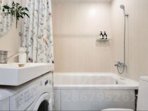 * Ванная комната: ванная белоснежная, санузел, фен, стиральная машина, утюг и тп, средства гигиены, нужные мелочи, тапочки