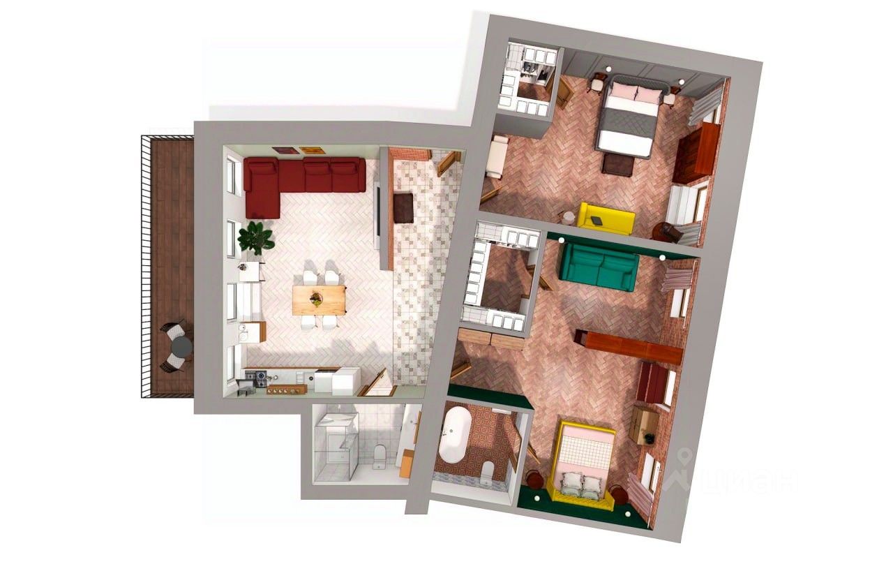 Квартира с видом на Фонтанку, смелым интерьером и исторической кирпичной кладкой. Яркая особенность — большая открытая терраса, чтобы встречать рассветы и закаты.