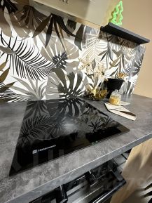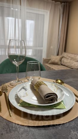 КУХНЯ-ГОСТИНАЯ: полноценная кухня с встроенным двухзонным холодильником, встроенным духовым шкафом с индукцией и электроплитой на 3 камфорки, мойка с Новым черным матовым смесителем с плавным ходом воды, подведена Вытяжка, которая может работать в режиме фильтра, кухня с PUSH-системой без выпирающих ручек, двуспальный раскладной диван в вельветовой приятной на ощупь обивке Гранит, телевизор 40 дюймов BBK, журнальный дизайнерский столик, разные режимы потолочного освещения (с пульта). Новая стильная посуда (керамика/камень), набор столовых приборов в золоте, винные бокалы, Барная стойка и комфортные барные вельветовые стулья.