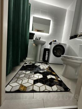 ЗОНА САНУЗЛА: Большое зеркало с LED-подсветкой и датчиком движения, черные матовые смесители, Новый тропический душ, ножной кран, стиральная машинка с возможностью удалённого управления и запуска стирки, стильные дозаторы с душистым гелем и лосьоном, стильная дизайнерская двухслойная занавеска (одна сторона не промокаемая, вторая мягкий велюр).