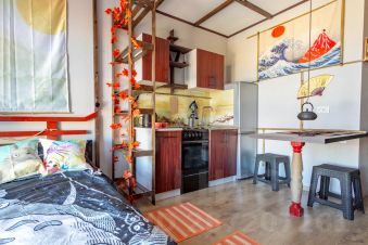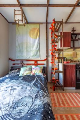 На севере Петербурга, в десяти минутах ходьбы от метро "Парнас", в новом, светящемся изнутри оранжевыми коридорами апарт-отеле "Старт" создан для ценителей изящной простоты и строгих линий небольшой японский домик в стиле ро-дзи. Здесь нет ни одного лишнего предмета, потому что жители Страны восходящего солнца уверены, что, если вещи не нашлось места для хранения, значит, в ней нет и необходимости. Панорамное окно и ансамбль светильников-андон создают в помещении световое облако и словно размывают границы. Здесь найдётся и традиционный чугунный чайник тэцубин, парящий на потолочном подвесе над символическим очагом ирори, и спинка кровати, повторяющая формой и цветом священную арку тори, а кухонная полка - просто запечатлённый в дереве иероглиф "счастье". Дорожный посох поэта Басё настраивает на возвышенный лад прямо с порога, высокодуховная улитка добралась до вершины Фудзи, а плед на кровати уютен, как мохнатый живот Тоторо.) Обстановка апартамента функциональна и практична, но, одновременно, декоративна, как шедевр искусства, чье назначение лишь в одном украшать собой пространство и наполнять гармонией жизнь обитателей. Полностью обжитой район, синяя ветка метро даёт кратчайший доступ к наиболее красивым местам Петербурга, большой супермаркет "Перекрёсток" 24 часа рядом с ЖК, большое количество магазинов, кафе и ресторанов вокруг, фитнес-клуб с бассейном в трёхстах метрах, красивейший и загадочный Шуваловский парк в пешей доступности.