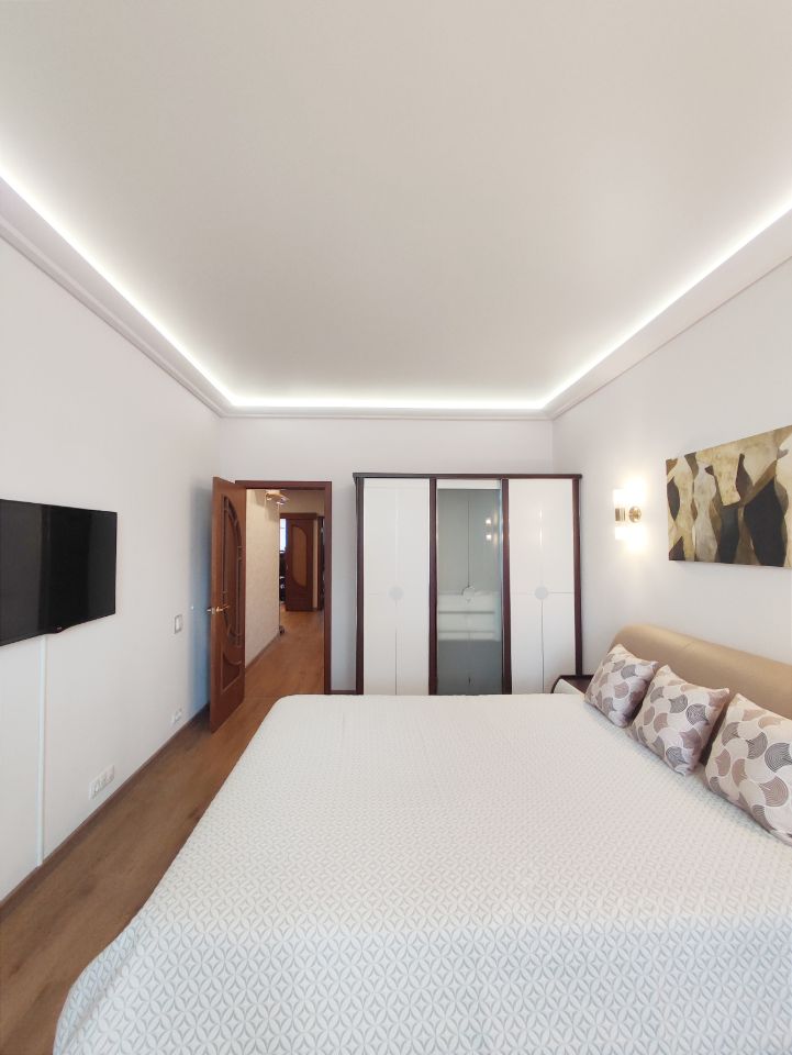В квартире имеется все необходимое для комфортного проживания, включая: 3 кондиционера, джакузи, посудомойку, бойлер, теплый пол, фильтры, большой холодильник, интернет, высокие потолки (3 метра), много мест хранения, несколько ТВ и прочее.