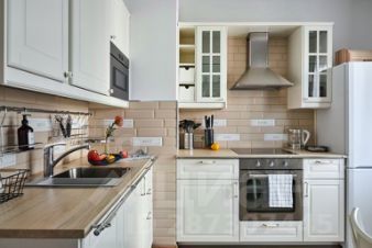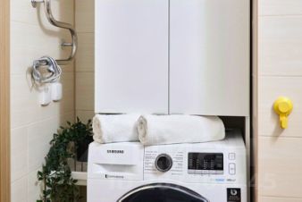 Квартира оснащена диваном-кроватью, раскладным креслом, постельным бельём и полотенцами, а также средствами гигиены: мыло, гель, шампунь, зубные щётки и одноразовые тапочки. Кухня оборудована холодильником, плитой с духовым шкафом, микроволновой печью, электрочайником, посудой и кухонными принадлежностями, есть фильтр для воды, посудомоечная и стиральная машины, сушилка. Также доступны телевизор, фен и утюг. В качестве комплимента предоставляются чай, кофе, сахар, соль, специи и масло.