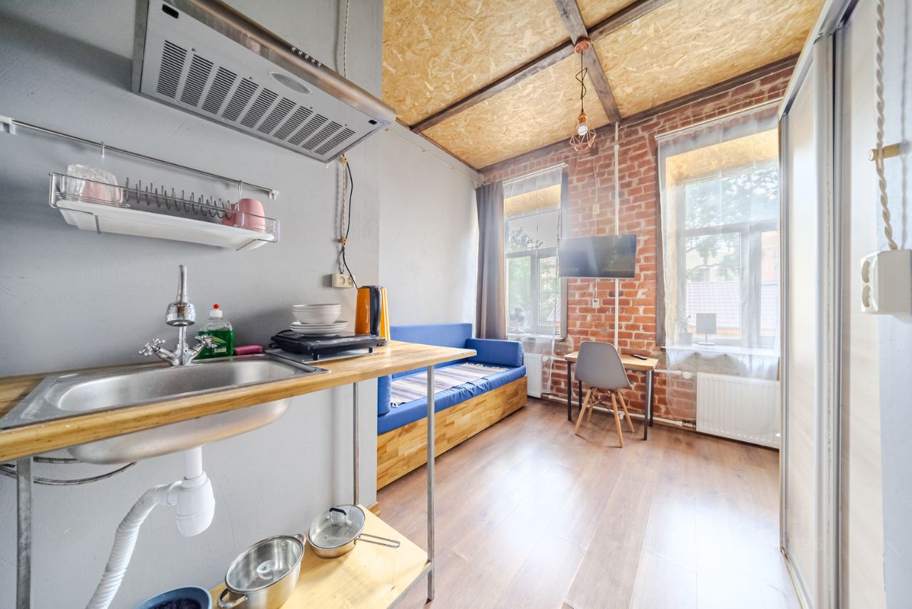 Студия в историческом центре с развитой инфраструктурой и хорошей транспортной доступностью не далеко от станции метро Василеостровская. Банки, аптеки, продовольственные магазины, море ресторанов и кафе на разный вкус и кошелёк.