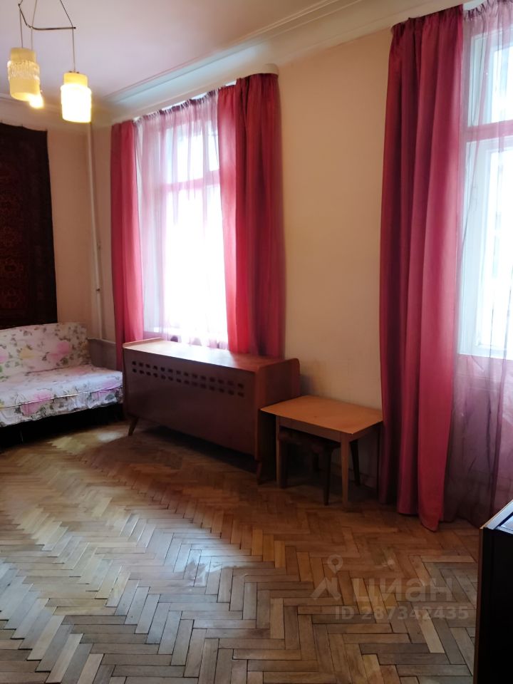Комната в в малонаселенной 3-х комн.квартире, собственник в квартире не проживает. В комнате косметический ремонт, двуспальная кровать, холодильник, вся необх.мебель. В ванной общая стиральная машина. На кухне свой сервант. В комнате большой балкон. Окна выходят на запад. Высокие потолки, сталинский дом.
