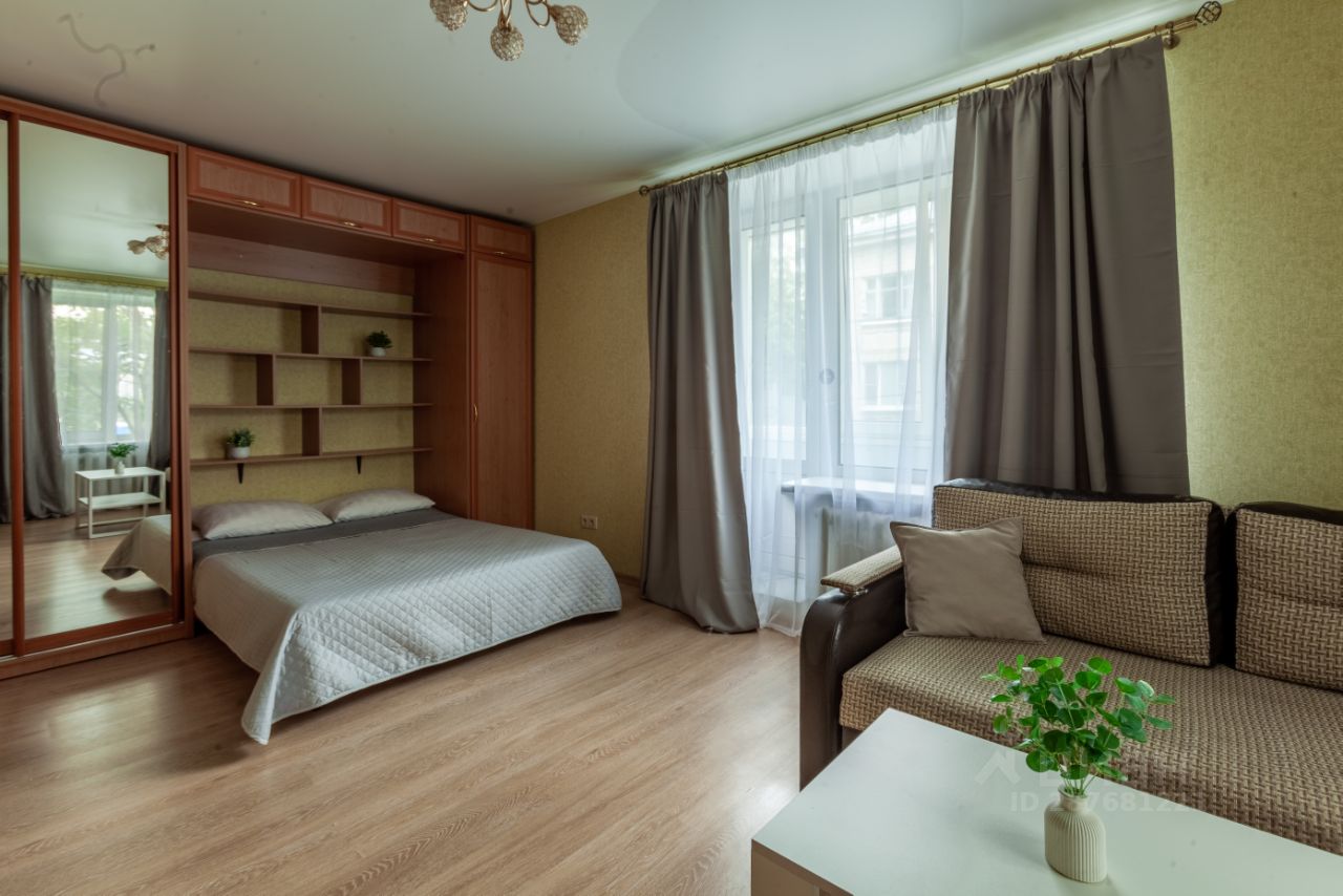 В квартире установлены 2 шкафа-кровати (полуторо- и двухместная), также имеется раскладной диван на 2 персоны. Комфортно расположиться смогут до 5 человек.