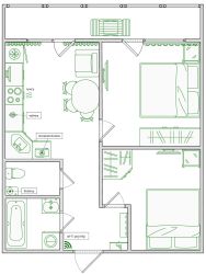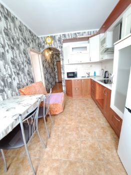 Техника: плазменный телевизор; фен, утюг, эл. чайник, эл.панель, СВЧ печь, стиральная машина, холодильник, водогрей (на случай отключения горячей воды), роутер. Wi-Fi- бесплатный и безлимитный, кабельное TV, теплые полы.