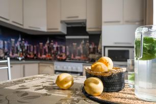 - Кухня с необходимой техникой: холодильник, плита, духовка, чайник, микроволновая печь, посуда для приготовления и сервировки, столовые приборы, чай, кофе;