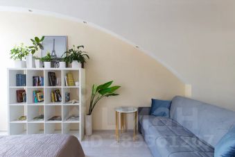 В мастер спальне удобная кровать Аскона, 160*200, шкафы, журнальный стол и диван-кровать Аскона с видом на старинное здание. На подоконниках мягкие подушки.