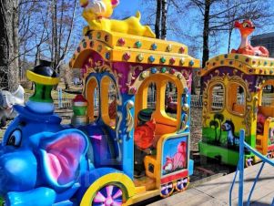 Напротив находится парк "Сказок" им. Бабушкина с аттракционами и качелями.