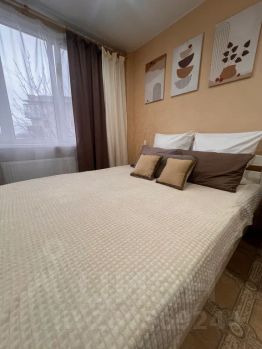 Удобства: двуспальный диван 150-205, дополнительное спальное место (раскладушка с ламелями), свободное парковочное место во дворе.