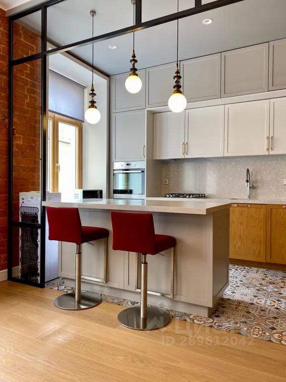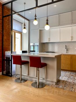 Две полноценных спальни с гардеробными, просторная гостиная с обеденной зоной. Кухня оборудована островком, который служит дополнительной рабочей поверхностью, оснащена всей необходимой техникой: духовкой, плитой, микроволновкой, холодильником, посудомоечной машиной, чайником, фильтром для питьевой воды.