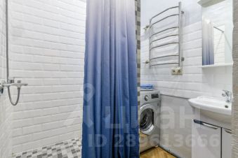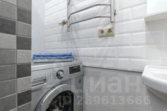 В санузле, помимо ванной, раковины и туалета, располагается стиральная машинка.