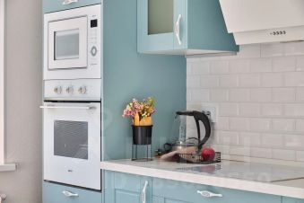 - встроенный духовой шкаф, варочная панель и СВЧ, посуда;