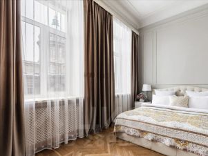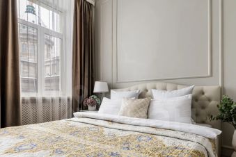 Апартаменты 120 кв.м. с 2 раздельными спальнями, 2 санузлами, сауной, просторной гостиной, 2 балконами и окнами с восхитительным видом на Казанский собор. Атмосфера покоя и умиротворения, бесподобная энергетика. Много солнца. Лифт. Вход в парадную с улицы.