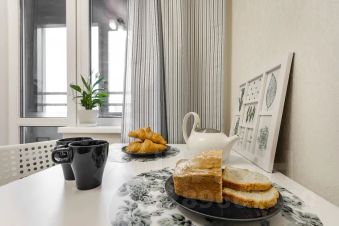 Апартаменты оборудованы полноценной кухней, оснащенной всей необходимой посудой и приборами для создания вкуснейшего завтрака (обеда или ужина).
