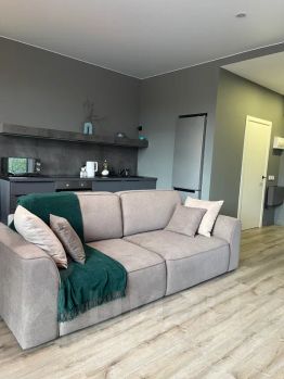 - большая гостиная с диваном, который разбирается